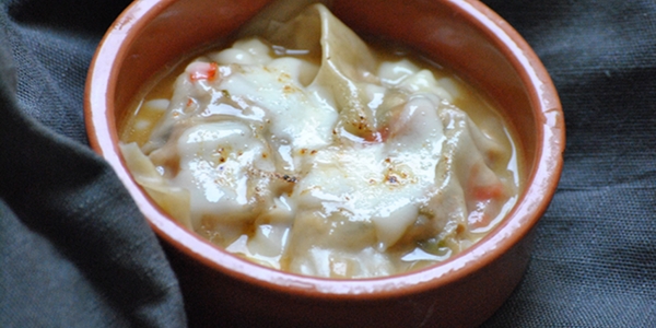 Quand l'eau boue, plongez les ravioles 30 à 40 secondes, jusqu'à ce qu'elles remontent à la surface. Retirez-les avec une écumoire et répartissez-les dans de petites cassolettes ou des ramequins allant au four.