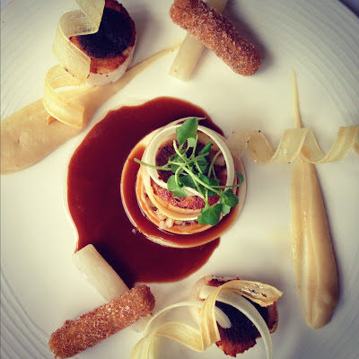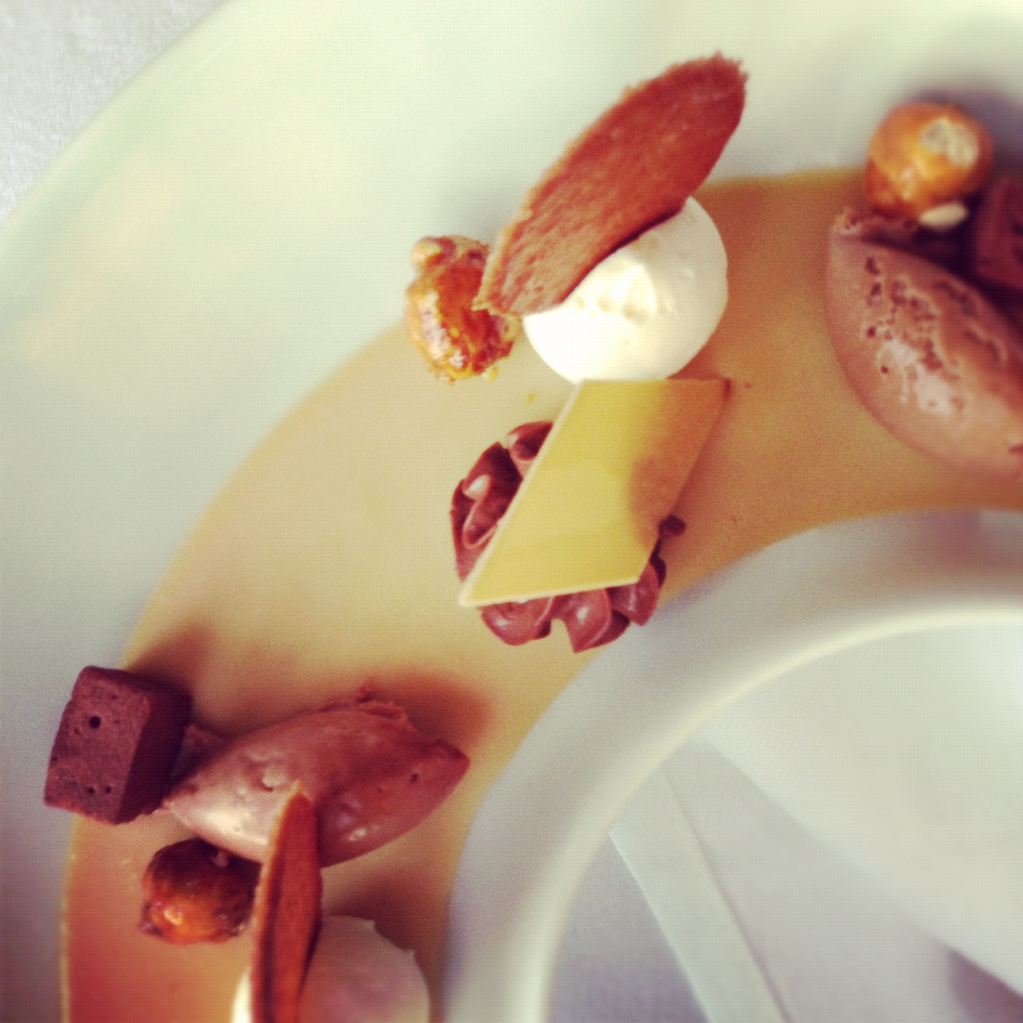 On chavire en dégustant le Ris de veau façon crumble d'amandes au citron vert. On succombe à la Palombe de chasse rôtie au lard colonnata et réduction "gin coriandre", cromesqui de cuisses confites, et aux Ravioles de faisan confites au jus de châtaigne et truffe blanche râpée minute...