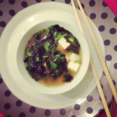J'y ai ajouté des brins de ciboule fraîche et du tofu.