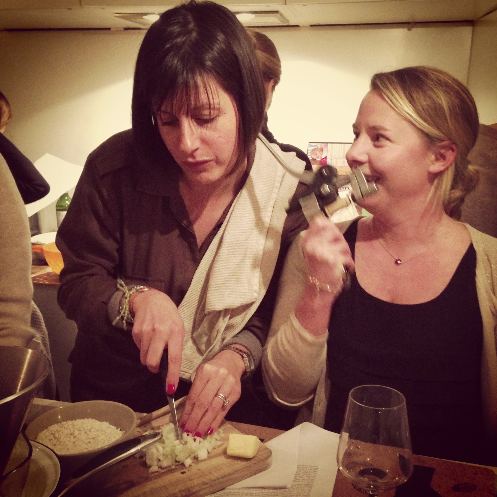 Pour cette deuxième session de l'atelier, my little spoon et ses copines ont tenté d'ouvrir le chapitre des ravioles et risottos. Les puristes italiens vont à coup sûr nous balancer des tomates séchées rances en sifflant des grossièretés terminant par "o" ou "a"... mais j'avoue, nous n'avons même pas réalisé notre pâte à ravioles nous-mêmes. Il faut dire que l'objectif de cet atelier n'est pas de passer une demi-journée en cuisine pour un plat, mais bien d'apprendre à réaliser des recettes un peu bonnes, un peu originales, quand on est une working-girl et qu'on n'a qu'une demi-heure chaque soir pour se mettre en cuisine, entre un biberon et une machine à étendre.