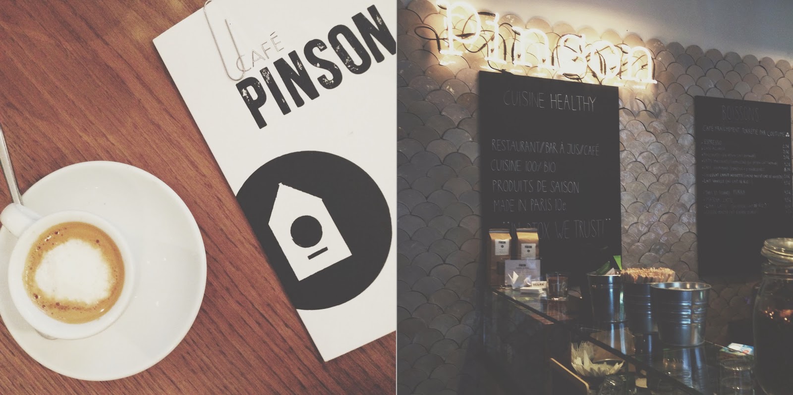 Changement d'ambiance au Café Pinson, plus sombre, plus cosy. On s'affale sur la banquette et on déguste un café macchiato de chez Coutume évidemment, avec un soupçon de lait d'amande. La carte est alléchante mais malheureusement ce n'est pas encore l'heure de manger. A refaire la prochaine fois !